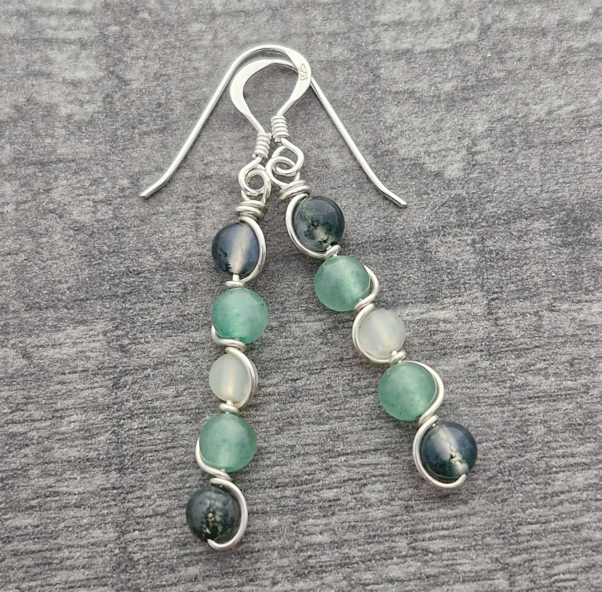 AVENTURINE, MOSS AGATE & NEW JADE Earrings - Sterling Silver