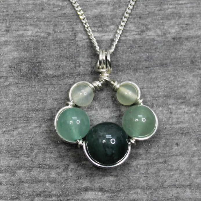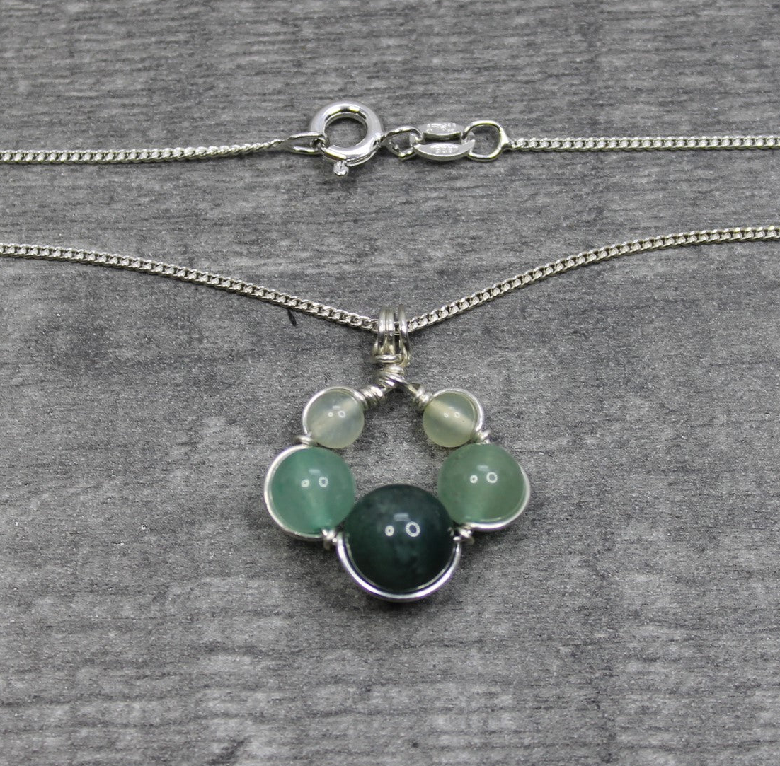 AVENTURINE, MOSS AGATE & NEW JADE Pendant - Sterling Silver