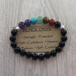 7 CHAKRA Elastic Bracelet with BLACK ONYX and STERLING SILVER Beads.
