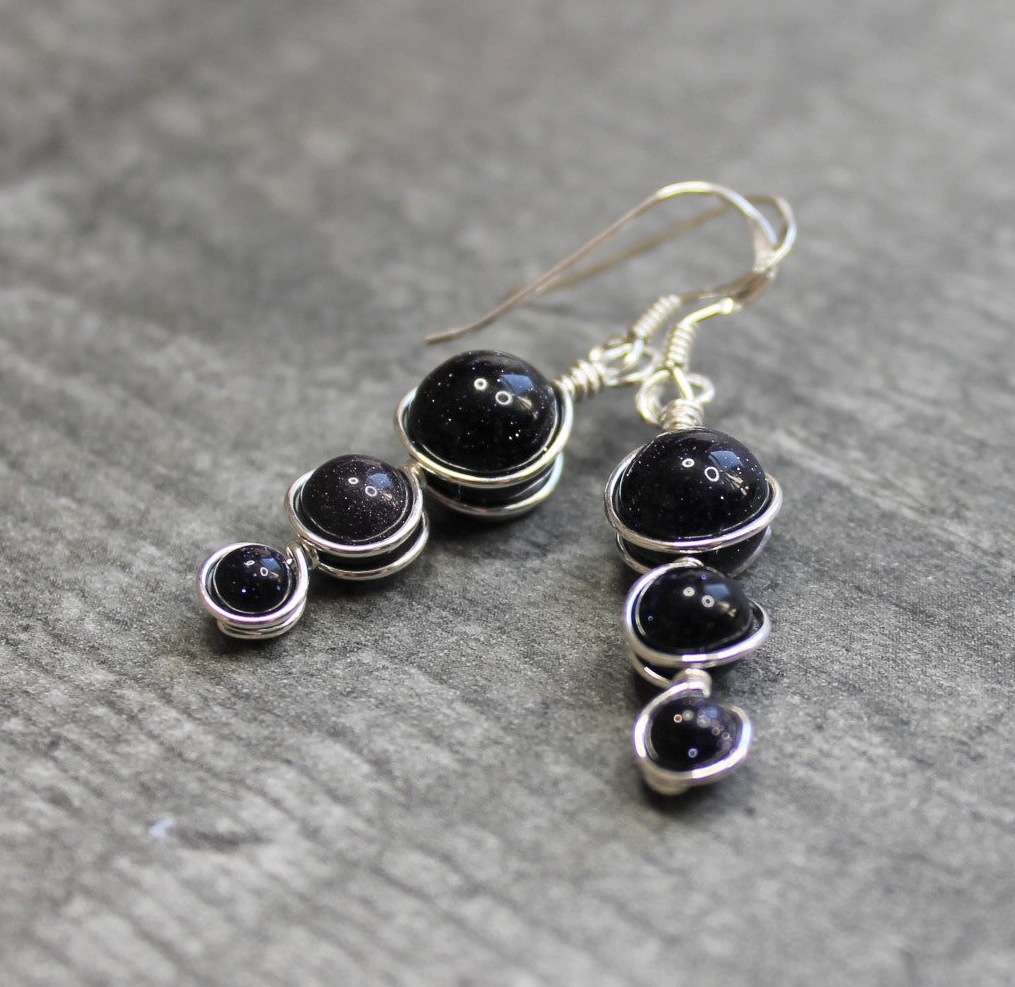 Each pair of earrings is handmade to order, the beads are wrapped in place with Sterling Silver wire and hung on Sterling Silver earwires.