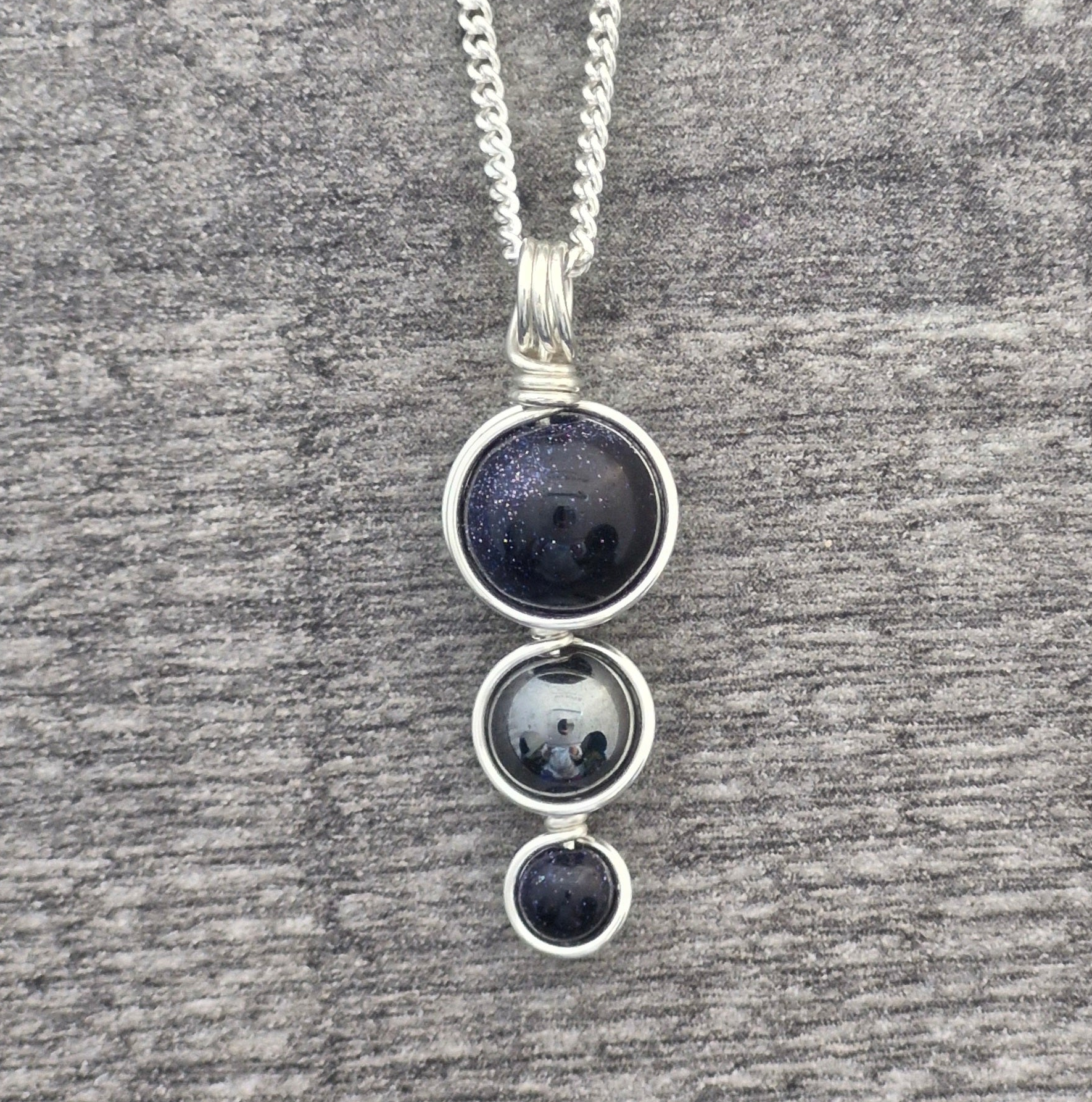 BLUE GOLDSTONE & HEMATITE Pendant - Sterling Silver.