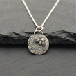 Each pendant is handmade to order. The silver disc is textured with a floral pattern before being embellished with a delicate little bee.