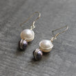 FRESHWATER PEARL Earrings - Cream & Grey - Sterling Silver.