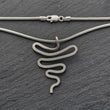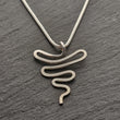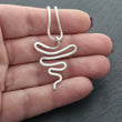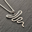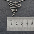 This statement pendant is made with solid Sterling Silver wire. It is polished to a high shine and hangs on a Sterling Silver snake chain.