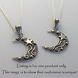 Each CHARMING MOON pendant is handmade to order, the shooting star details are soldered on piece by piece, creating a unique design every time! I chose to oxidise the background to enhance the shine on the stars. As the back of the moon is polished to a high shine, the pendant is reversible